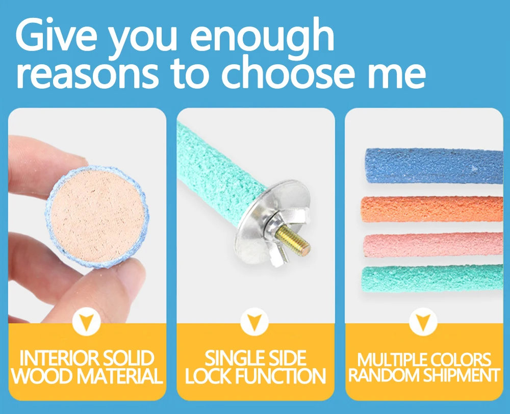 1PC Colored Parrot Perch Toy – Quartz Sand Paw Sharpening, Bird Cage Accessory