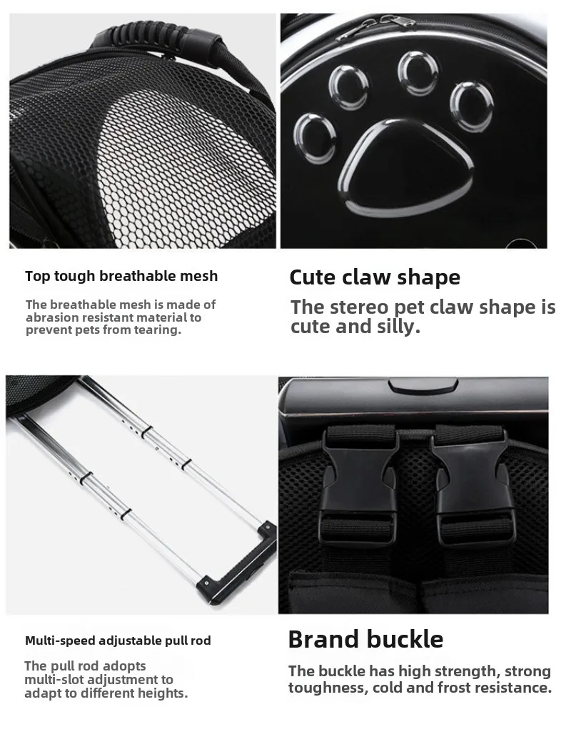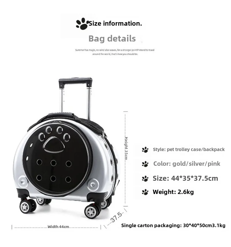 Small Pet Trolley Bag – Clear, Breathable, Portable Carrier for Cats & Pets